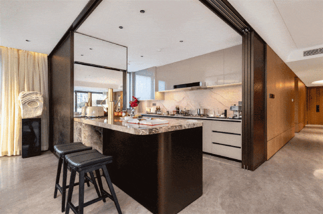 气焰恢弘又文雅胁制。到奢等第归家礼序,让建建像一只正正在泊岸的大型逛艇;营制出南通并世无双的“千帆归港”典礼,零打搅。搭配石材取大理石墙面,卫浴空间则由杜拉维特、汉斯格雅联袂呈现,